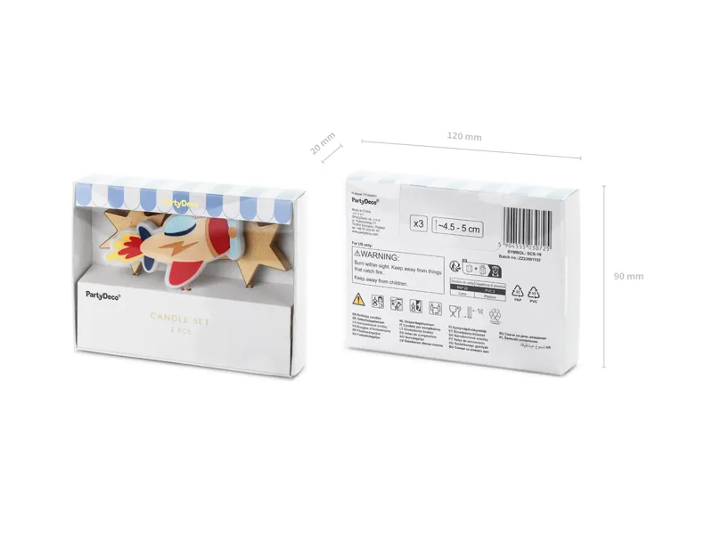 Airplane & Stars Pick Birthday Cake Candles (Pack of 3)