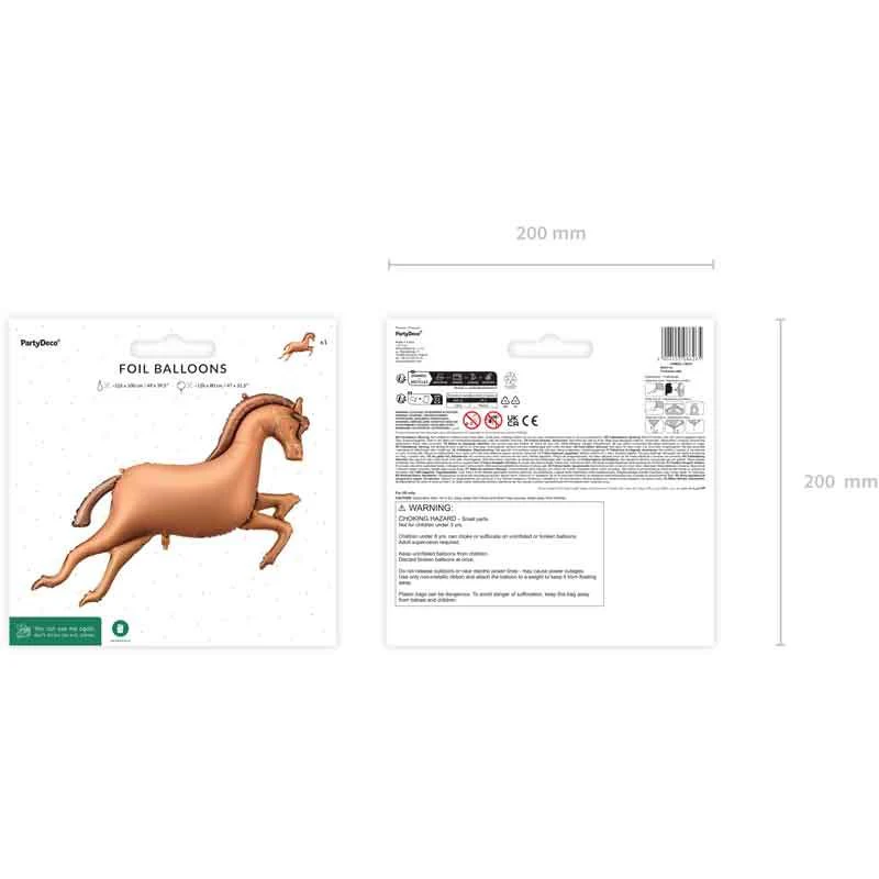 - Saddle up for a memorable event with the Brown Horse Shaped Foil Balloon, a grand 125 x 100 cm decoration perfect for farm-themed parties, equestrian birthdays, or countryside celebrations.