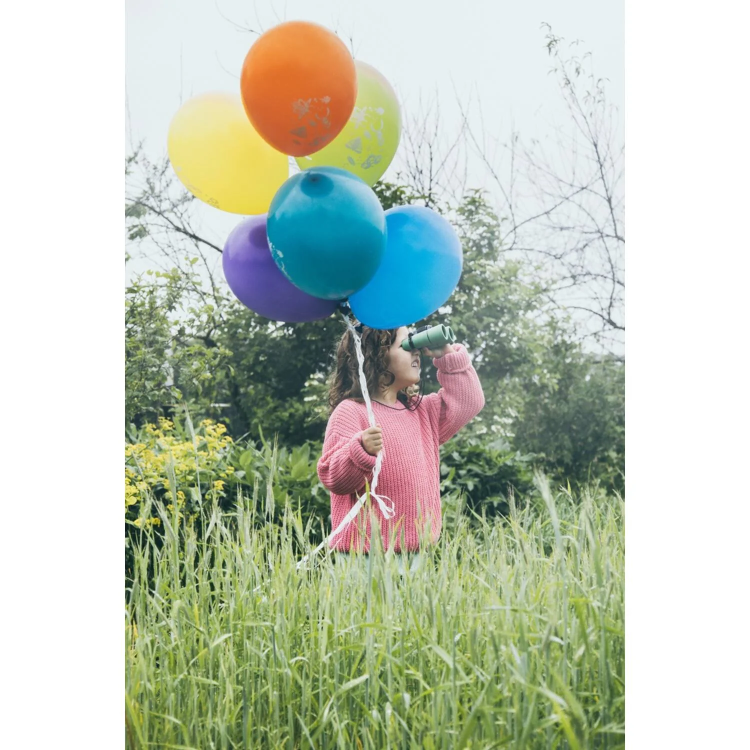 - 6 latex balloons in the colours: orange, yellow, burgundy, turquoise, blue, purple.