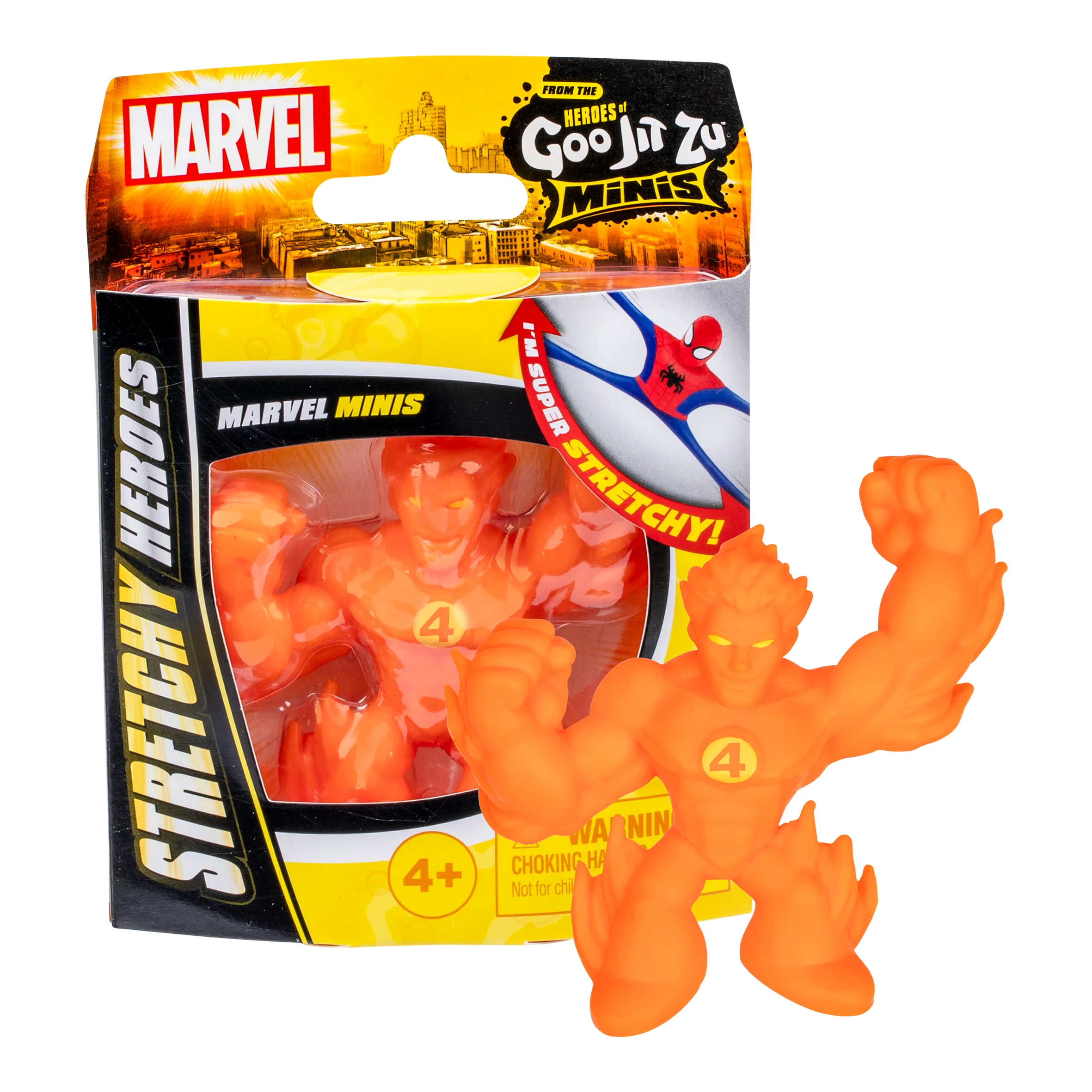 - Collect all eight mini figures—each sent at random. These stretchy heroes can expand up to four times their size, perfect for wrapping around each other in epic battles.
