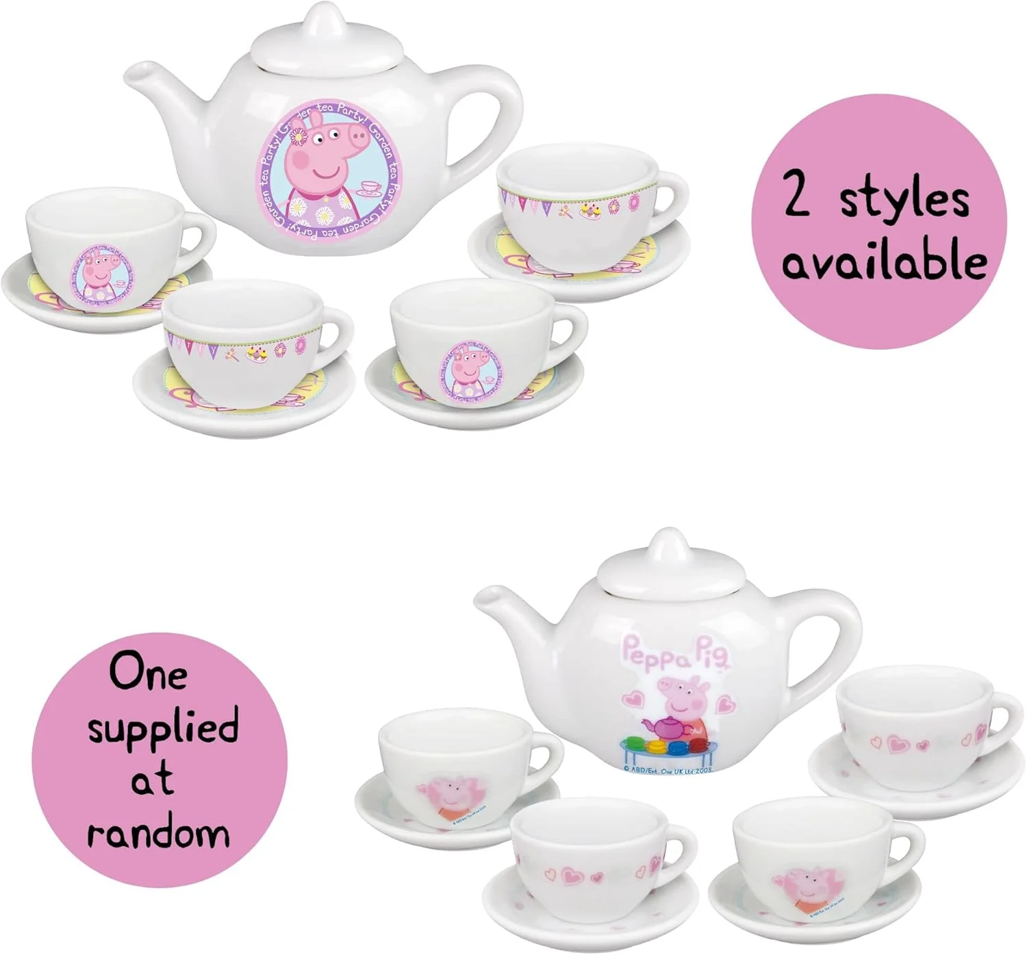 - FEATURES - This Peppa Pig Porcelain Tea Set is perfect for having an afternoon tea party with all your friends including Peppa. Sit down for a tea party with Peppa Pig with this beautiful 10 piece porcelain tea set featuring a fun Peppa Pig design. This Tea Set includes 4 Tea Cups with 4 Saucers and a Tea Pot with the lid. This traditional classic tea set is sure to be a hit with any toddler, perfect for some rainy day fun.