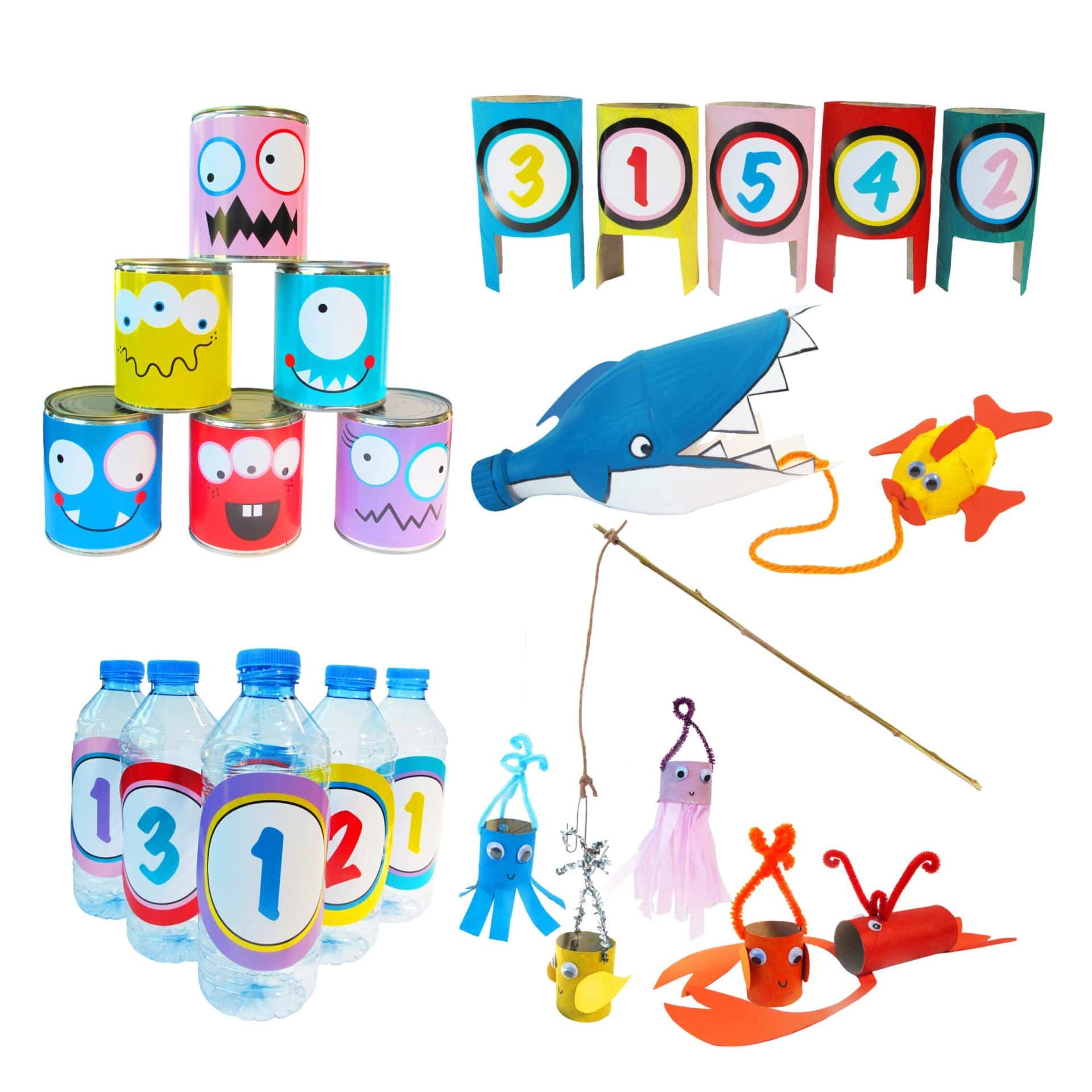 - The box contains five amazing craft projects with all the accessories you need to turn your household rubbish into fantastic games including a tin can ally, fishing game and skittles!