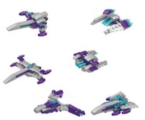 - The 6 individual space ships are: Storm Fighter (31pcs), Invisible Wing Fighter (29pcs), Penetrating Fighter (31pcs), Lightning Fighters (28pcs), Galaxy Fighter (31pcs), Phantom Wing Fighter (32pcs).