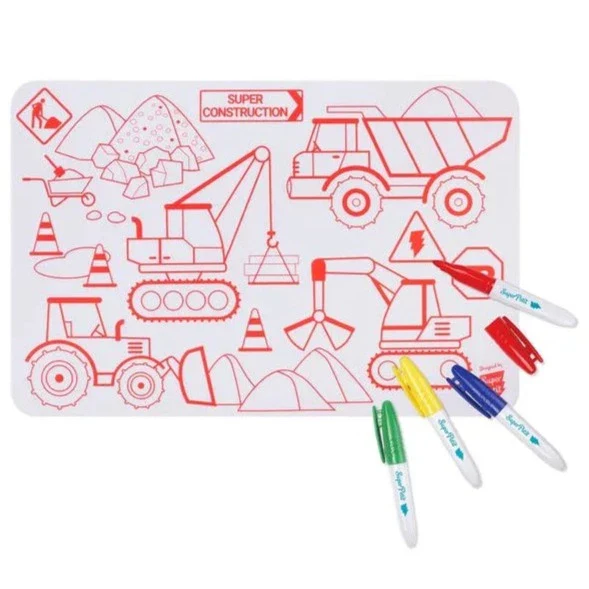 - Super Petit - Mini Reversible Colouring Placemats With 4 Felt Pens - Construction