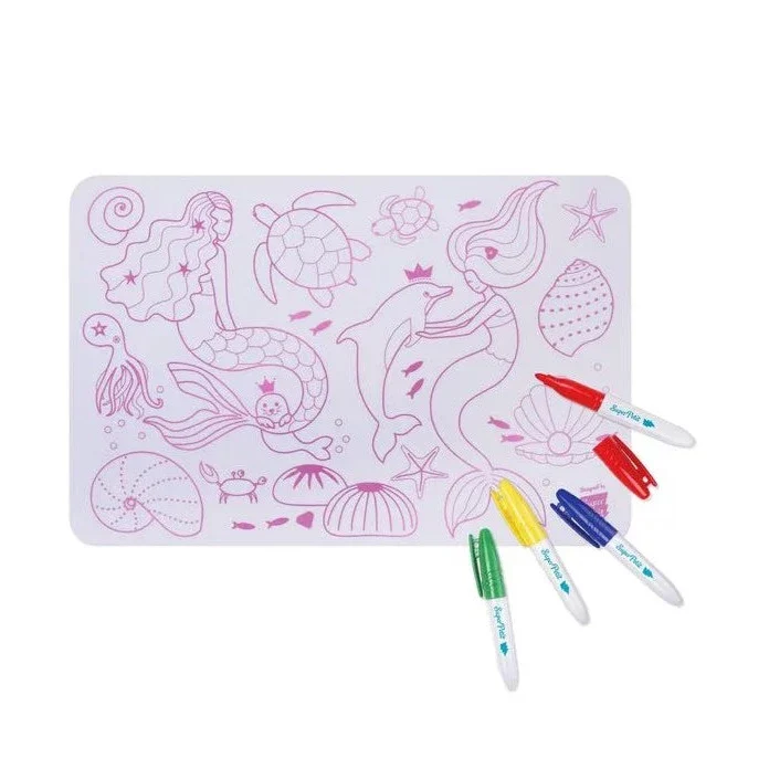 - Super Petit - Mini Reversible Colouring in Playmat With 4 Felt Pens - Mermaid