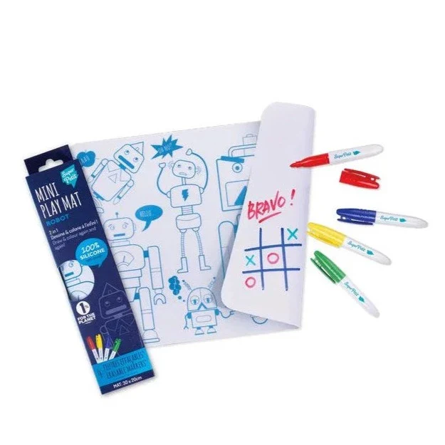 -70%Super Petit Reusable Mini Colouring Mat & Pens Set - Robot Theme—